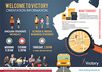 at the campus Level 8, 22 Market Street, Sydney NSW 2000. Orientation materials which are student handbook and Induction Handbook will be provided during orientation